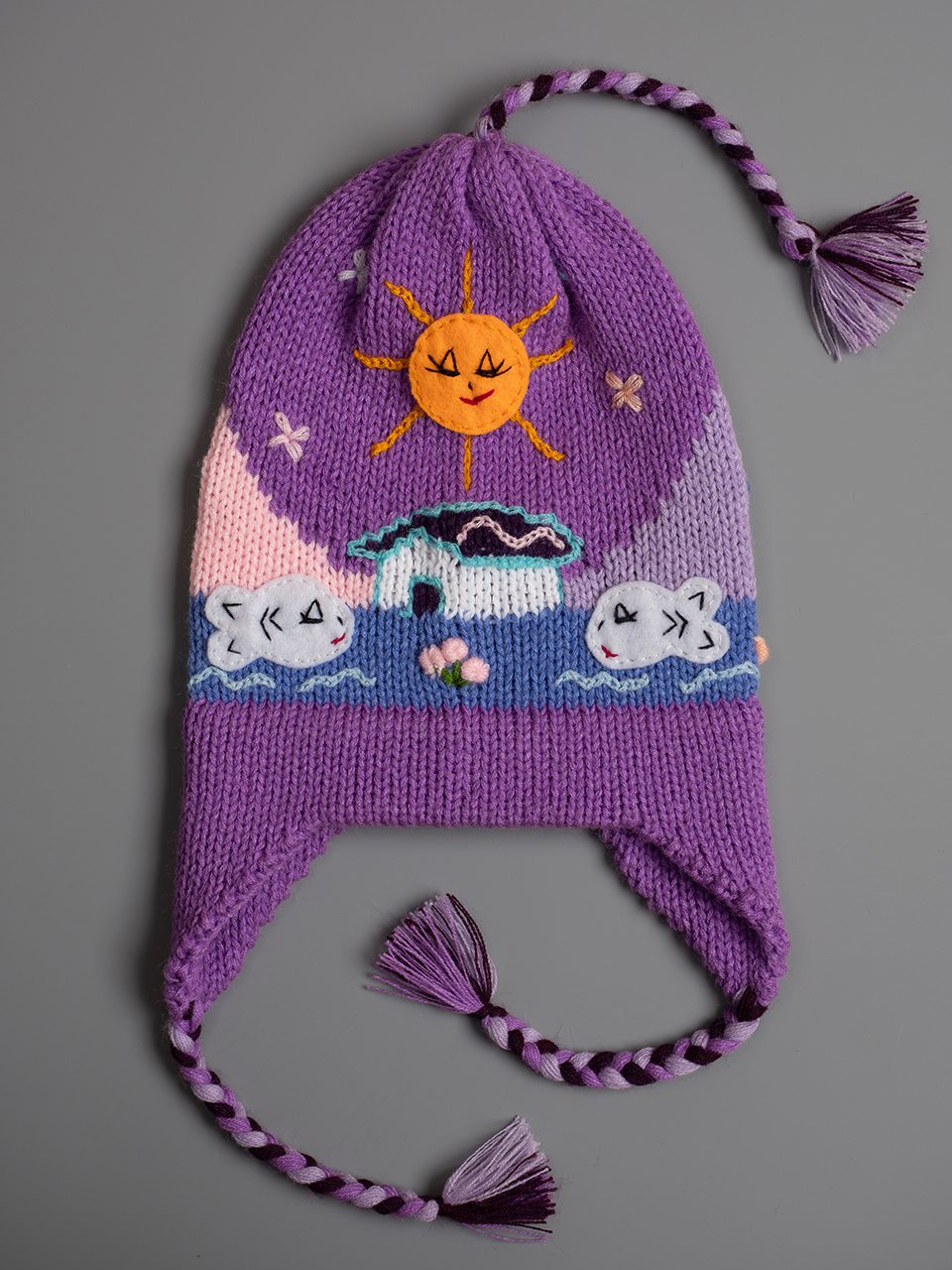 Детска шапка лилава 2 - 8 години 15.34 € Перуанска детска зимна шапка със сцени от андинската природа, както отпред, така и отзад. Всеки детайл е ръчно зашит и завършен, за да се създаде 3-D ефект. Подходяща за деца от 2 до 8 години. « предходен продукт следващ продукт » Добави в кошницата