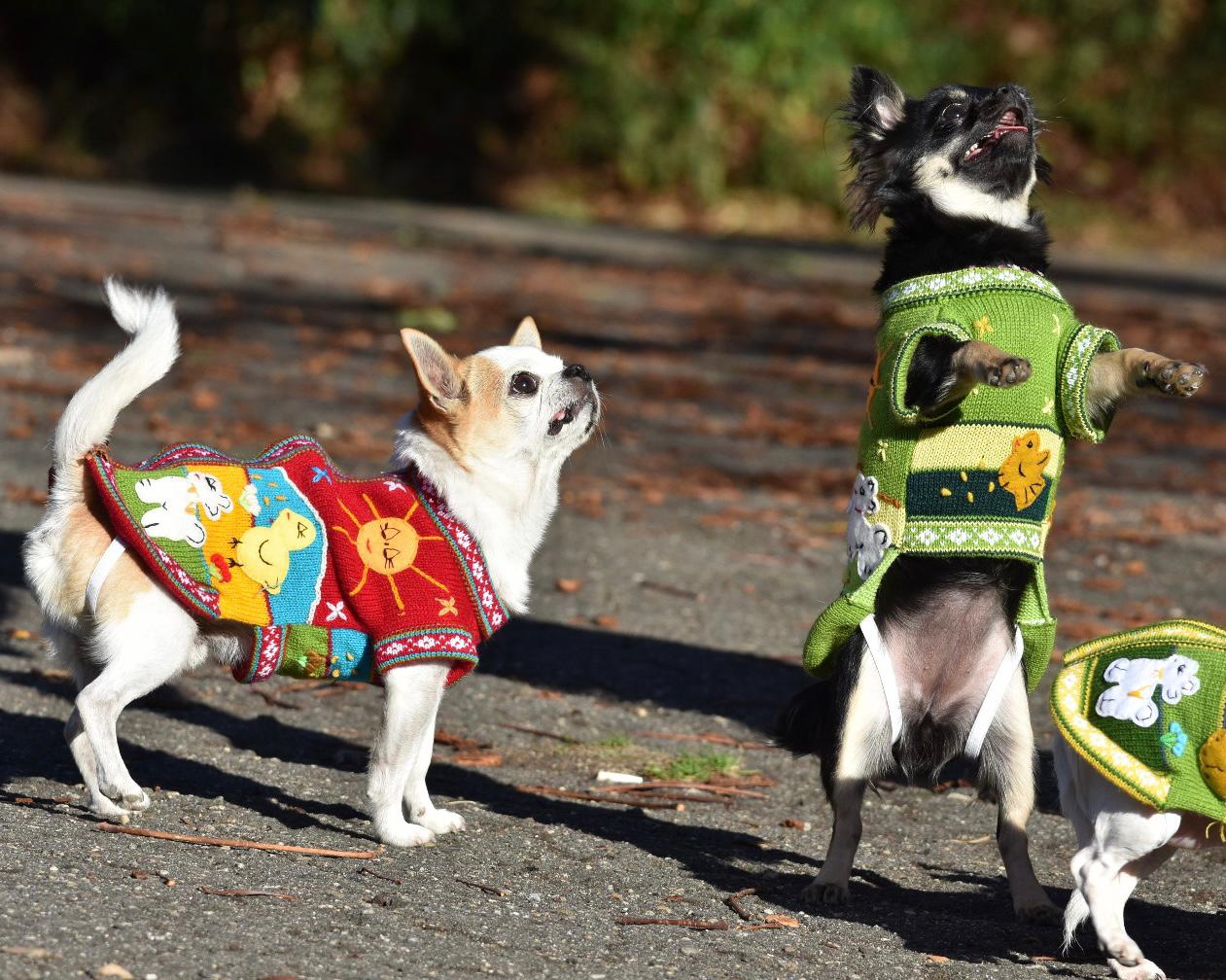 Дрешка за куче или коте, със сцени от андинската природа както отпред, така и отзад. Всеки детайл е ръчно бродиран и завършен, за да се създаде 3-D ефект. Дрешките са подходящи за кучета и котки между 1 и 15 кг.