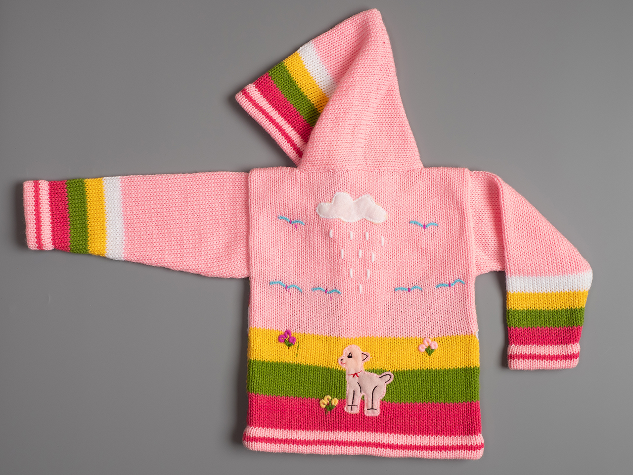 Известни в Перу с името Chompas Arpilleras, жилетките са ръчно изработени от занаятчии от коренното население на перуанските Анди, от древните култури Аймара и Кечуа. Изобразяват сцени от перуанската природа както отпред, така и отзад на дрехата. Слънцето свети в планините, а лами и пилета се хранят в подножието. Всеки детайл е ръчно зашит и завършен, за да се създаде 3-D ефект. Можем да Ви предложим широка гама от цветове за момчета и момичета, както и избор от размери от 0 до 7 години.