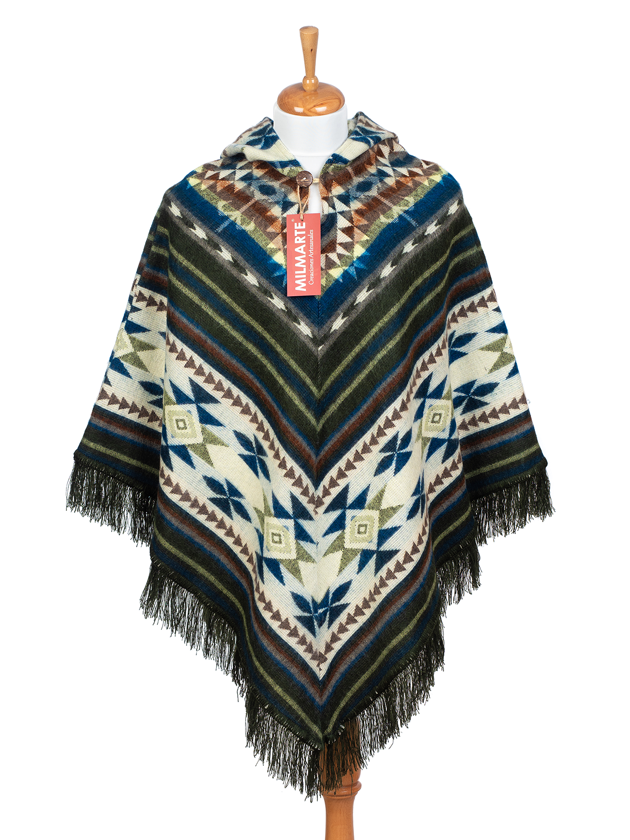 Authentic Ecuadorian women's poncho, universal size. Originating from the Andes, designed to keep the body warm while also breathable, ponchos are becoming increasingly popular in Europe. Our ponchos are made of alpaca and sheep wool, which makes them luxuriously soft and warm.