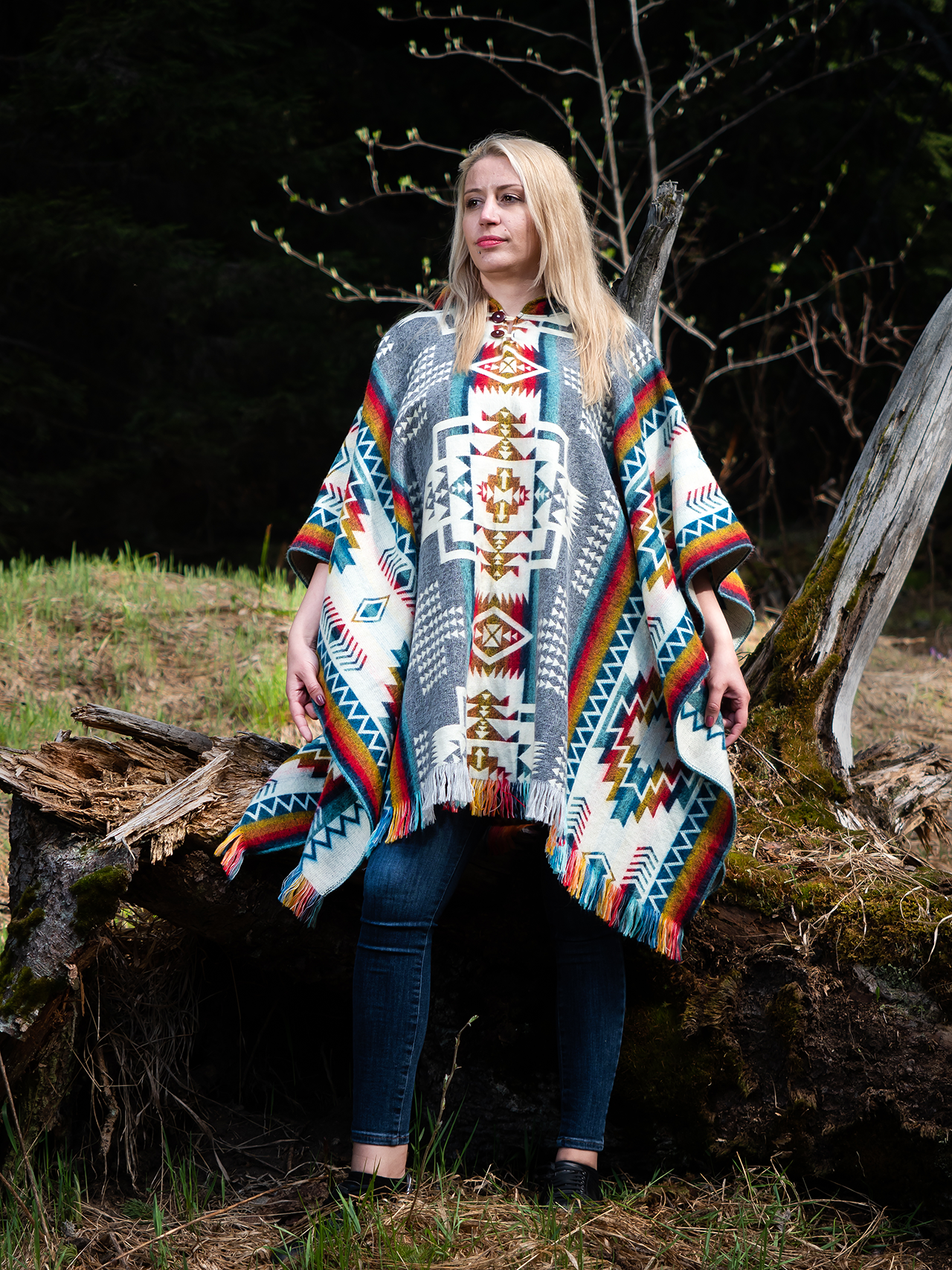 Poncho unisex gray geometric figures