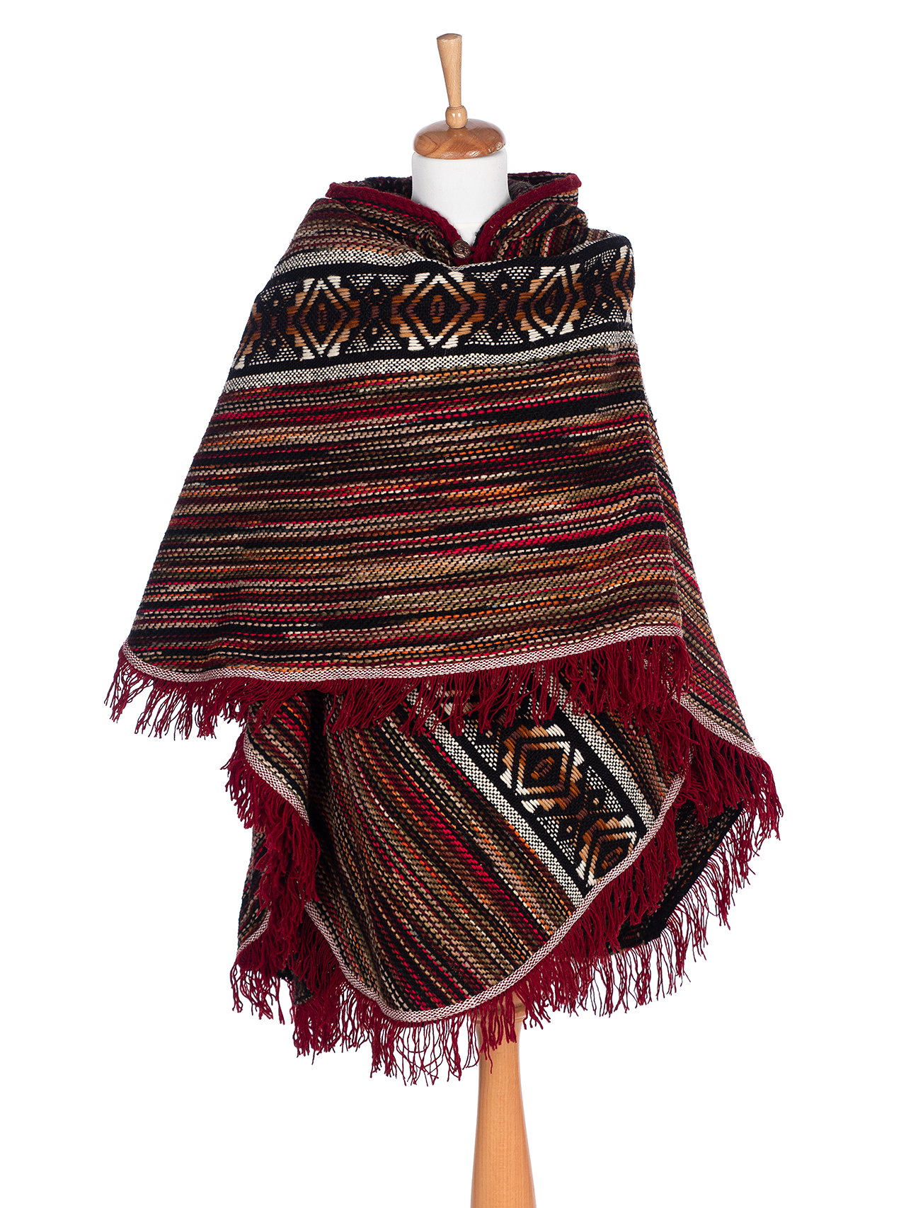 Authentic Ecuadorian unisex poncho, universal size, 100% sheep wool. Originating from the Andes, designed to keep the body warm while also breathable, ponchos are becoming increasingly popular in Europe. Our ponchos are made of alpaca and sheep wool, which makes them luxuriously soft and warm.