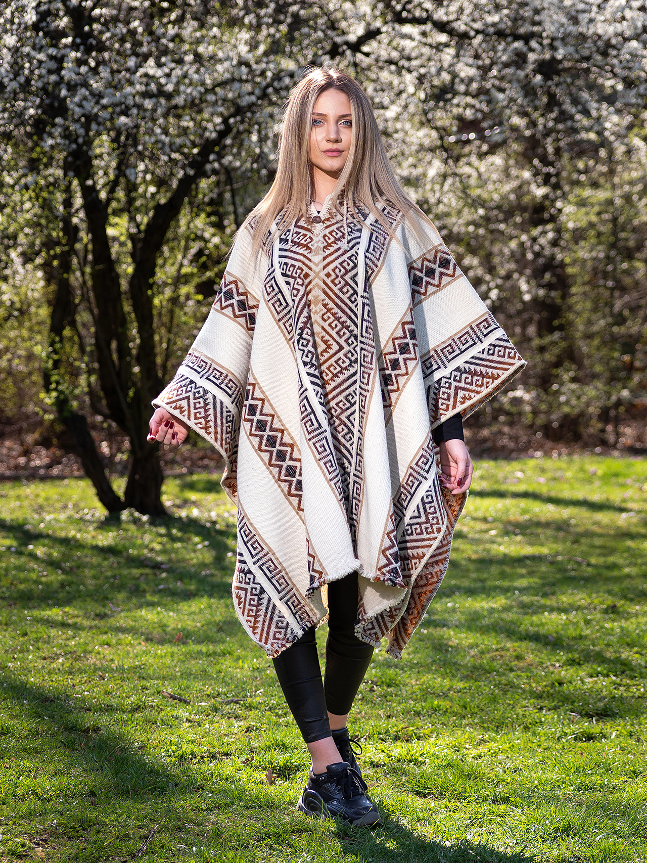 Mapuche poncho unisex white 127 € We present you the Mapuche ponchos, 100% sheep wool, woven on a loom, incredibly thick and heavy, the weight of a poncho is 1,400 kg. « previous product next product » 0