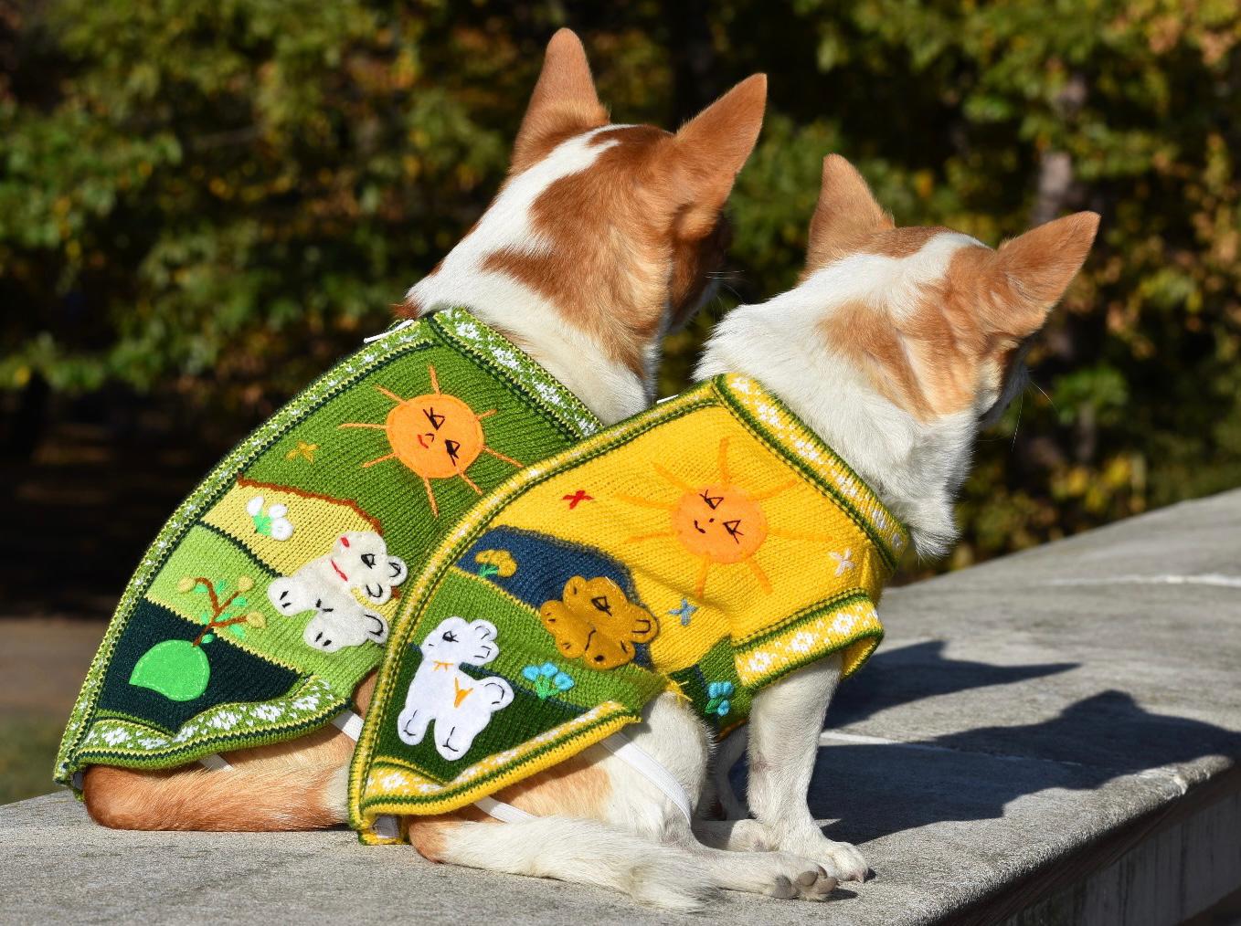 Dog's cardigan green 17 € Cardigan for dog or cat with scenes from the Peruvian countryside on both front and back. Every detail is hand embroidered and finished to create a 3-D effect. The clothes are suitable for dogs and cats between 1 and 15 kg.Size 0A - 23 cmB - 24 cmC - 31 cmSize 2A - 27 cmB - 29 cmC - 37 cmSize 4A - 31 cmB - 31 cmC - 42 cmSize 6A - 34 cmB - 33 cmC - 47 cmSize 8A - 37 cmB - 38 cmC - 51 cm « previous product next product » Please choose 02468 0