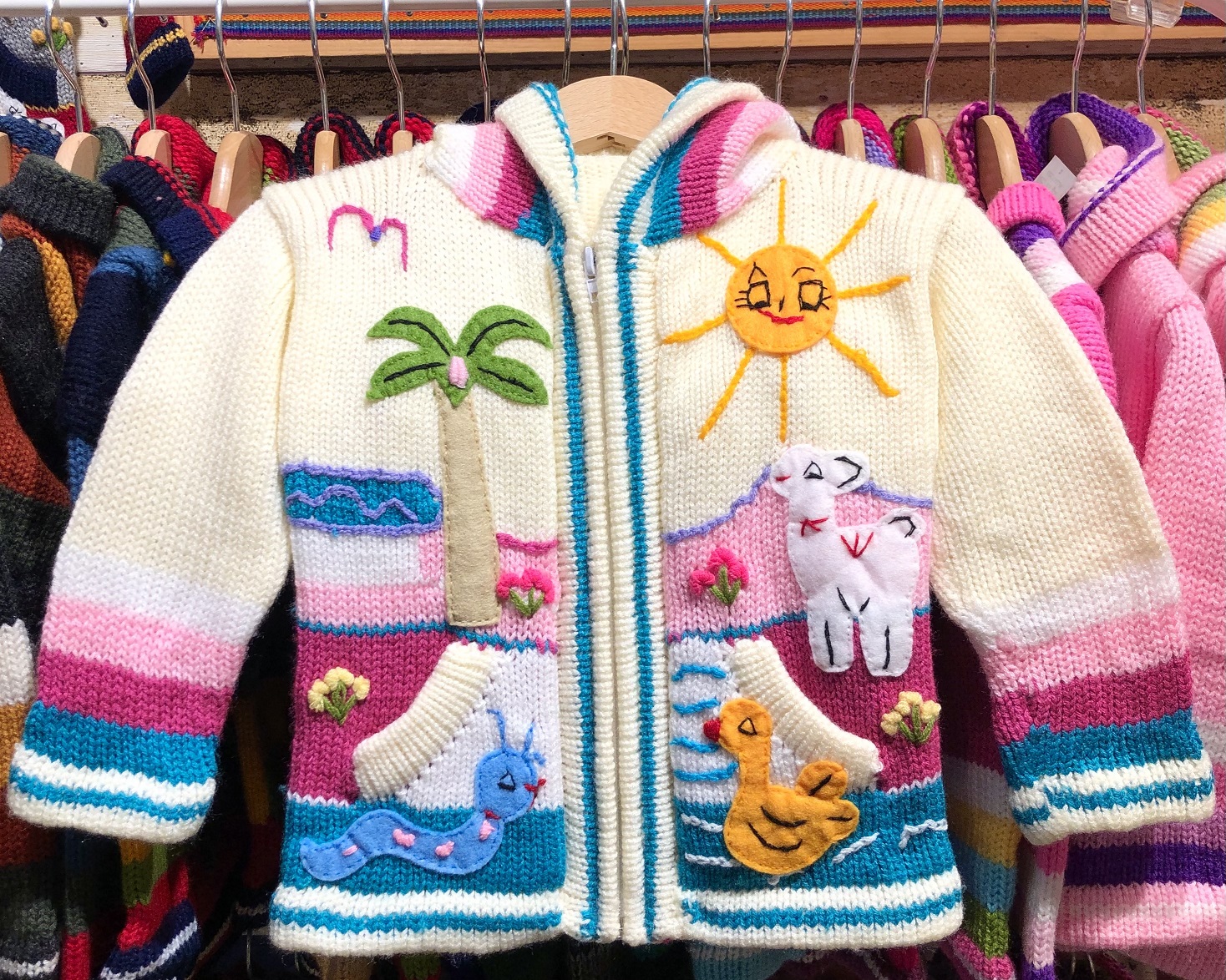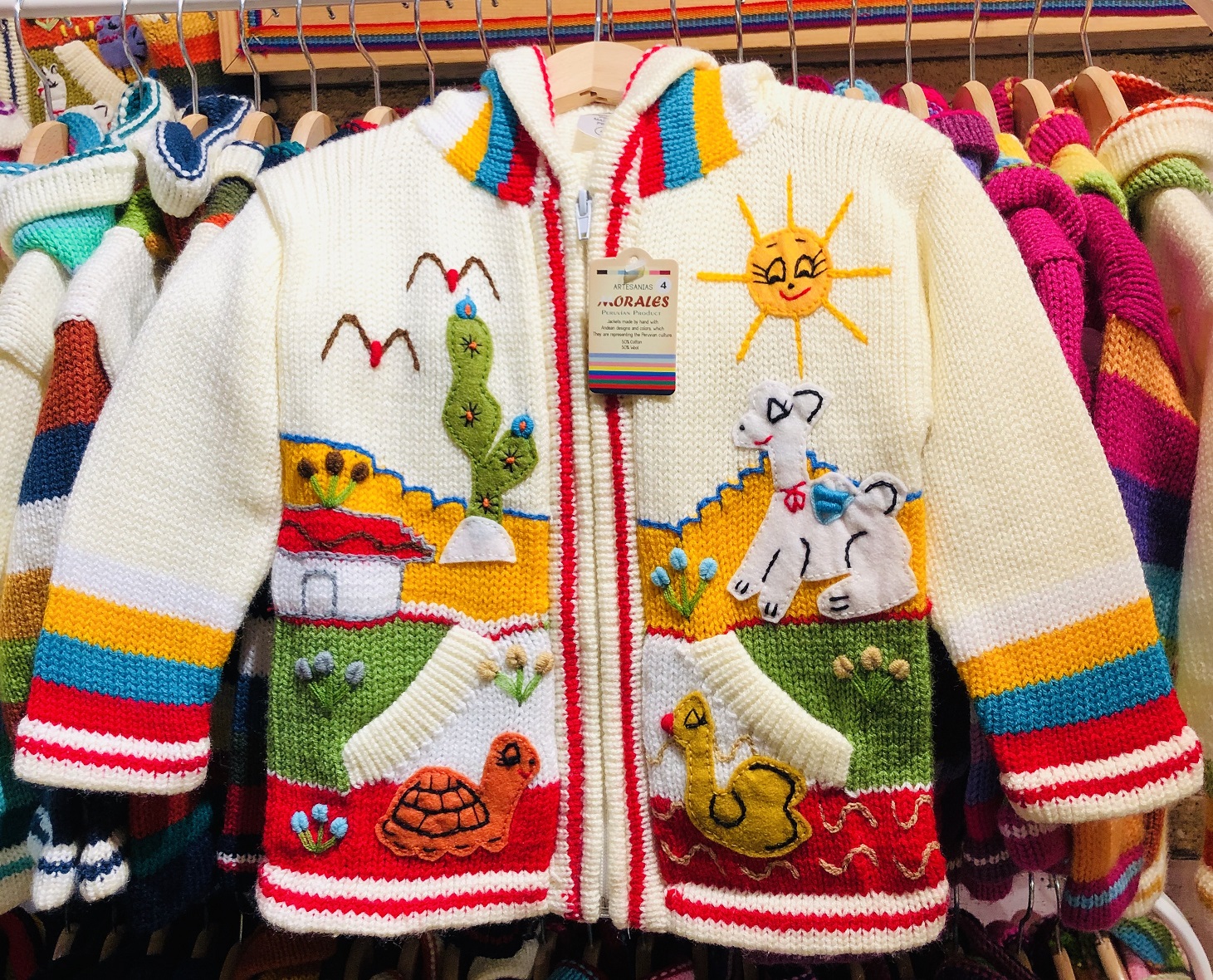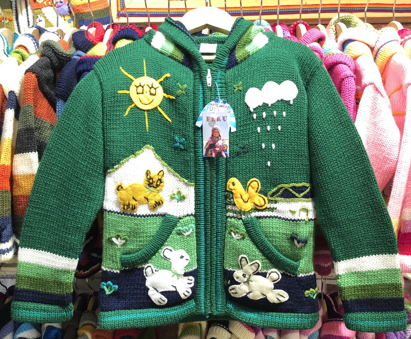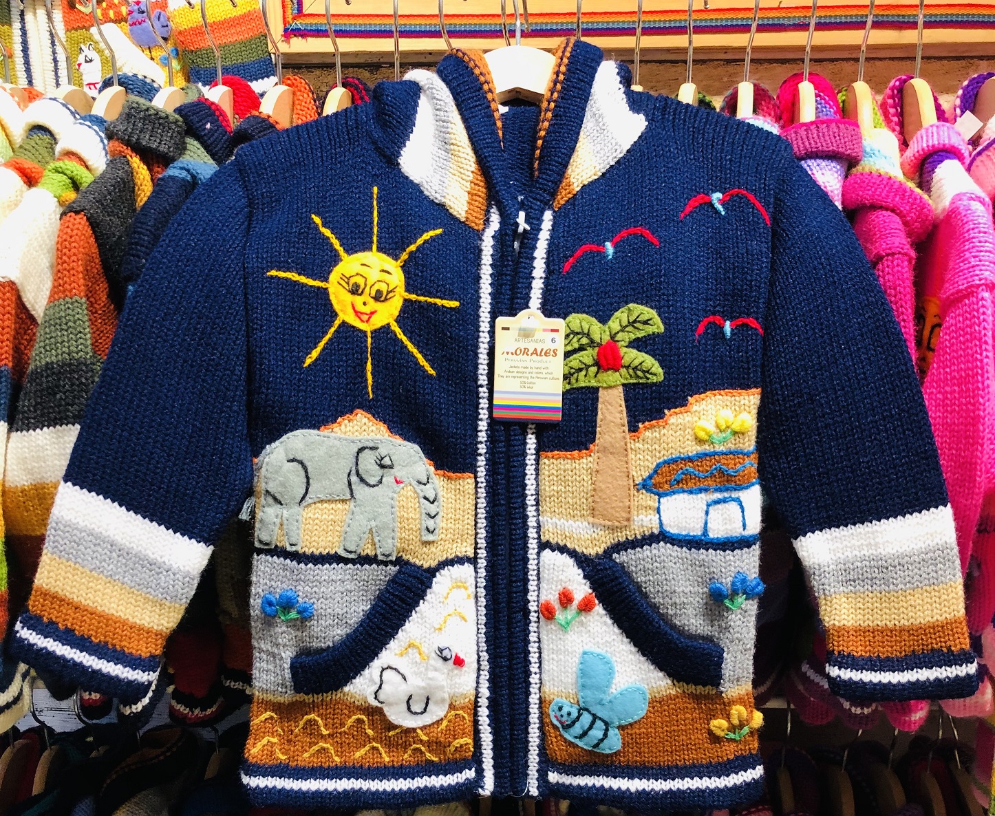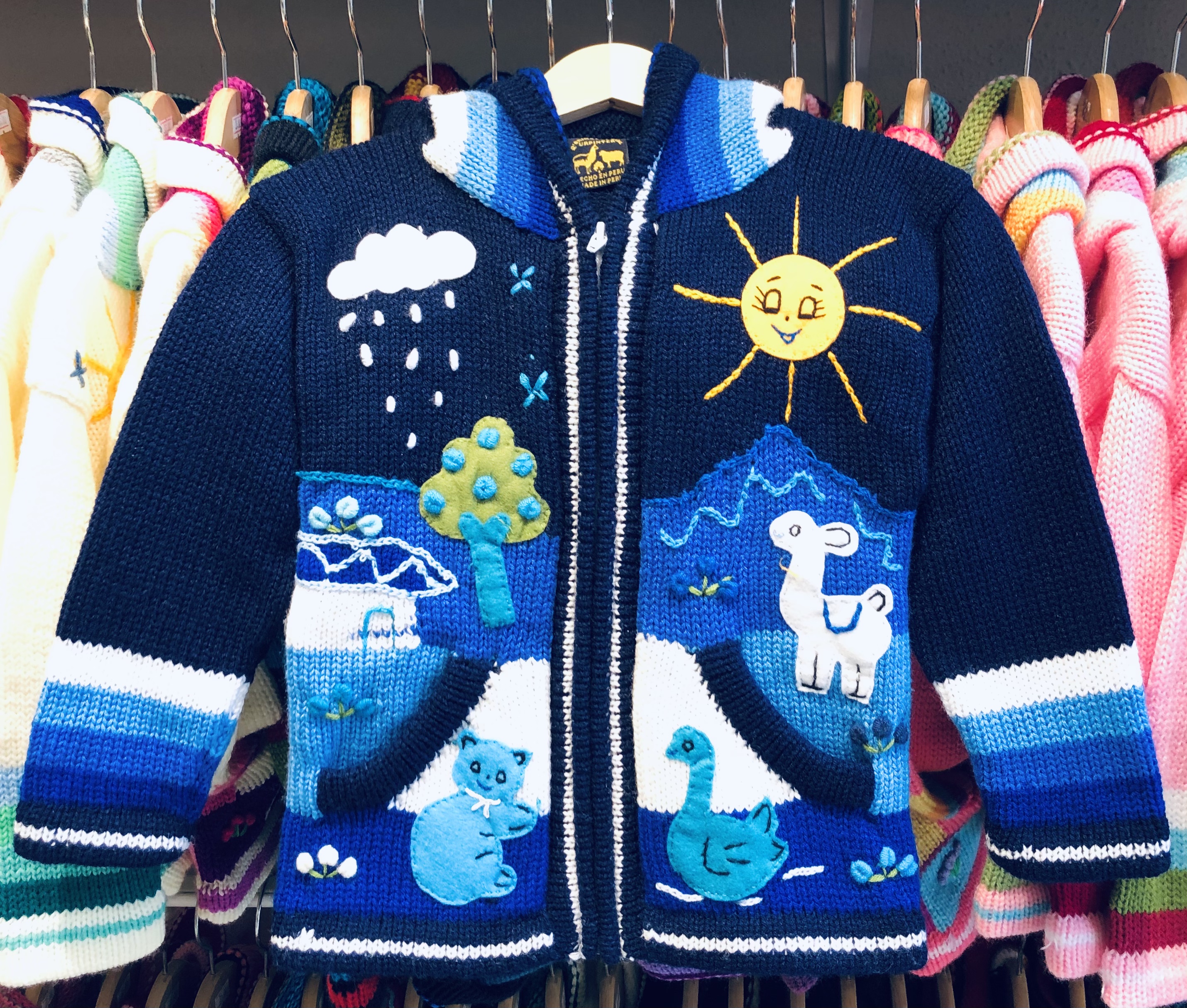 Peruvian children's winter hat with scenes from the Peruvian countryside both front and back. Every detail is hand embroidered and finished to create a 3-D effect. Suitable for children from 0 to 3 years.