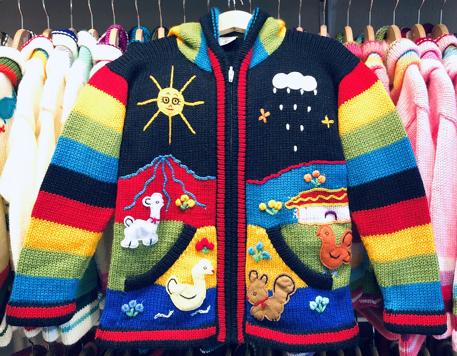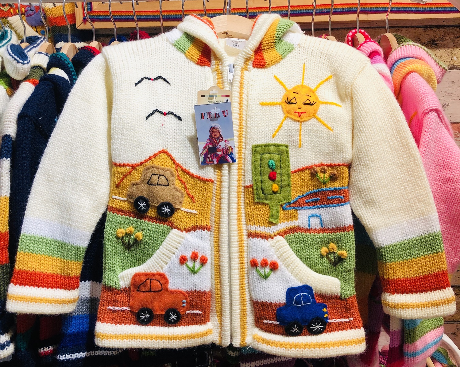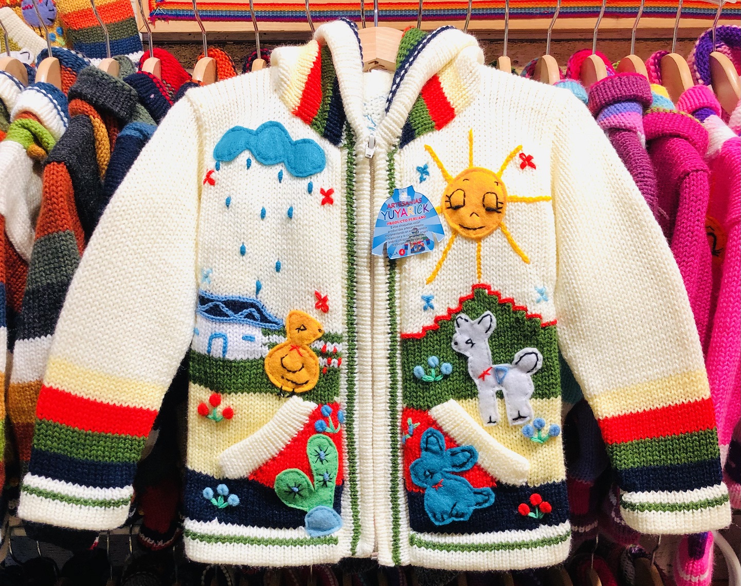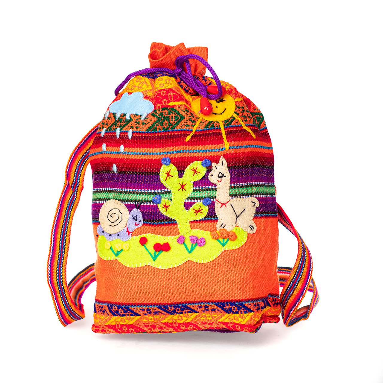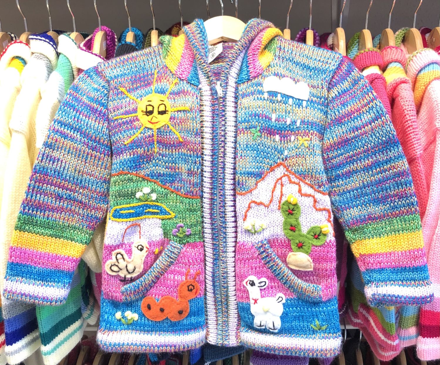 Peruvian children's winter hat with scenes from the Peruvian countryside both front and back. Every detail is hand embroidered and finished to create a 3-D effect. Suitable for children from 0 to 3 years.