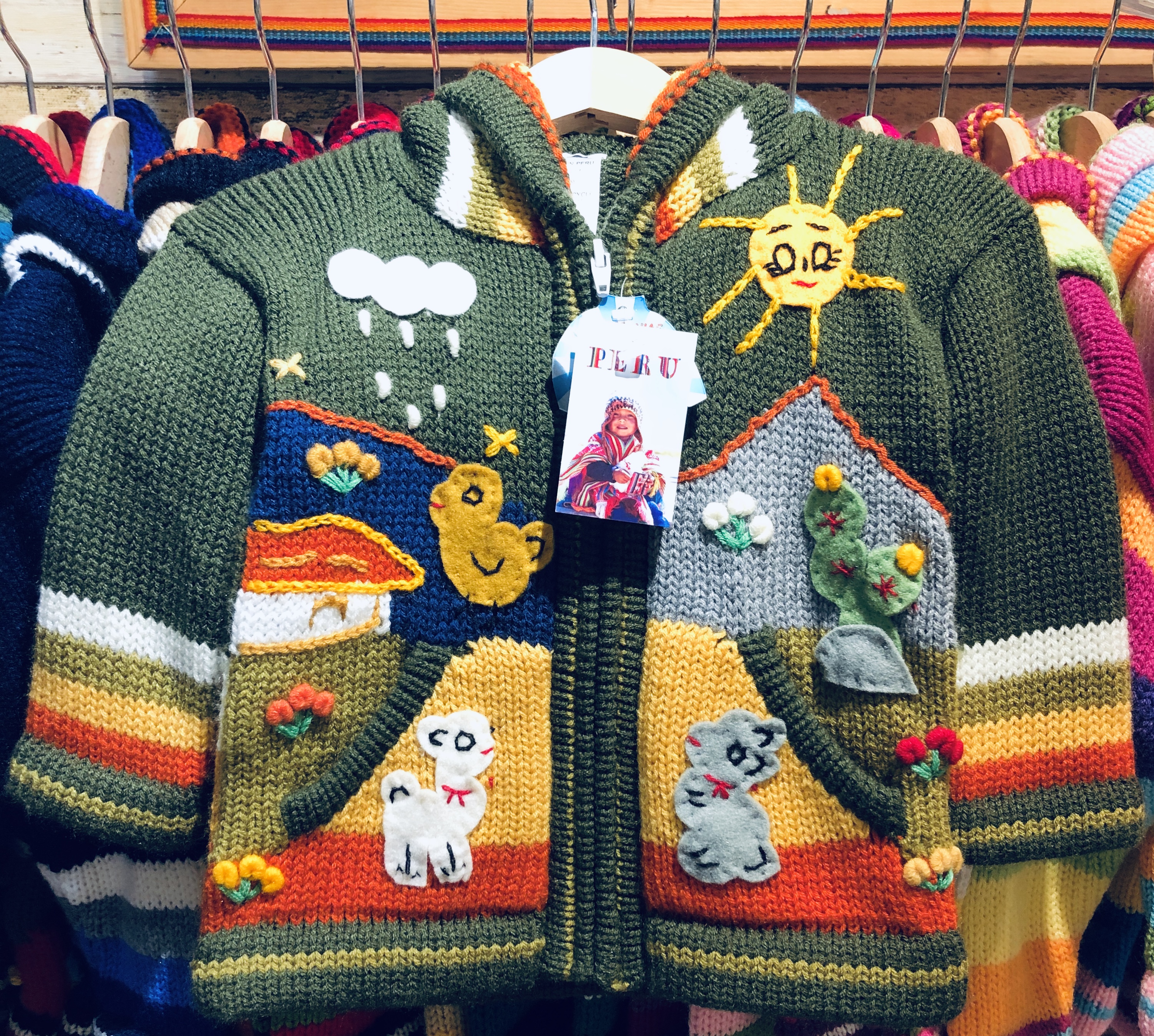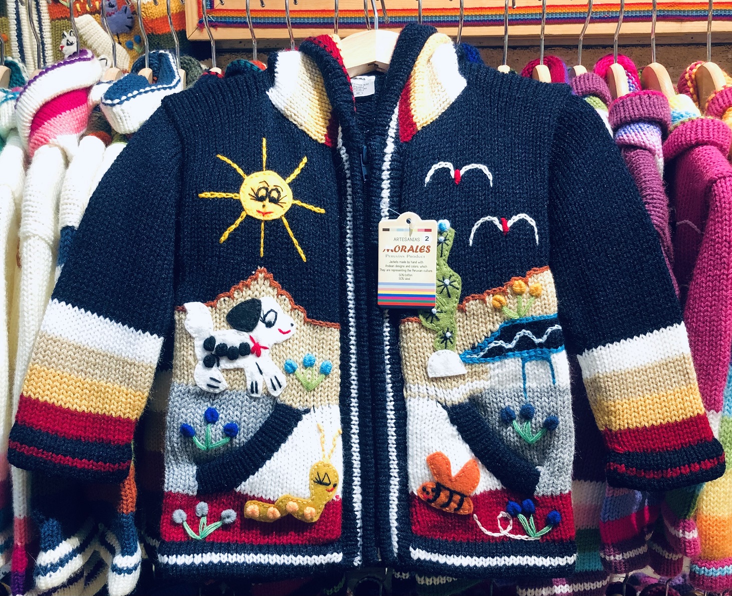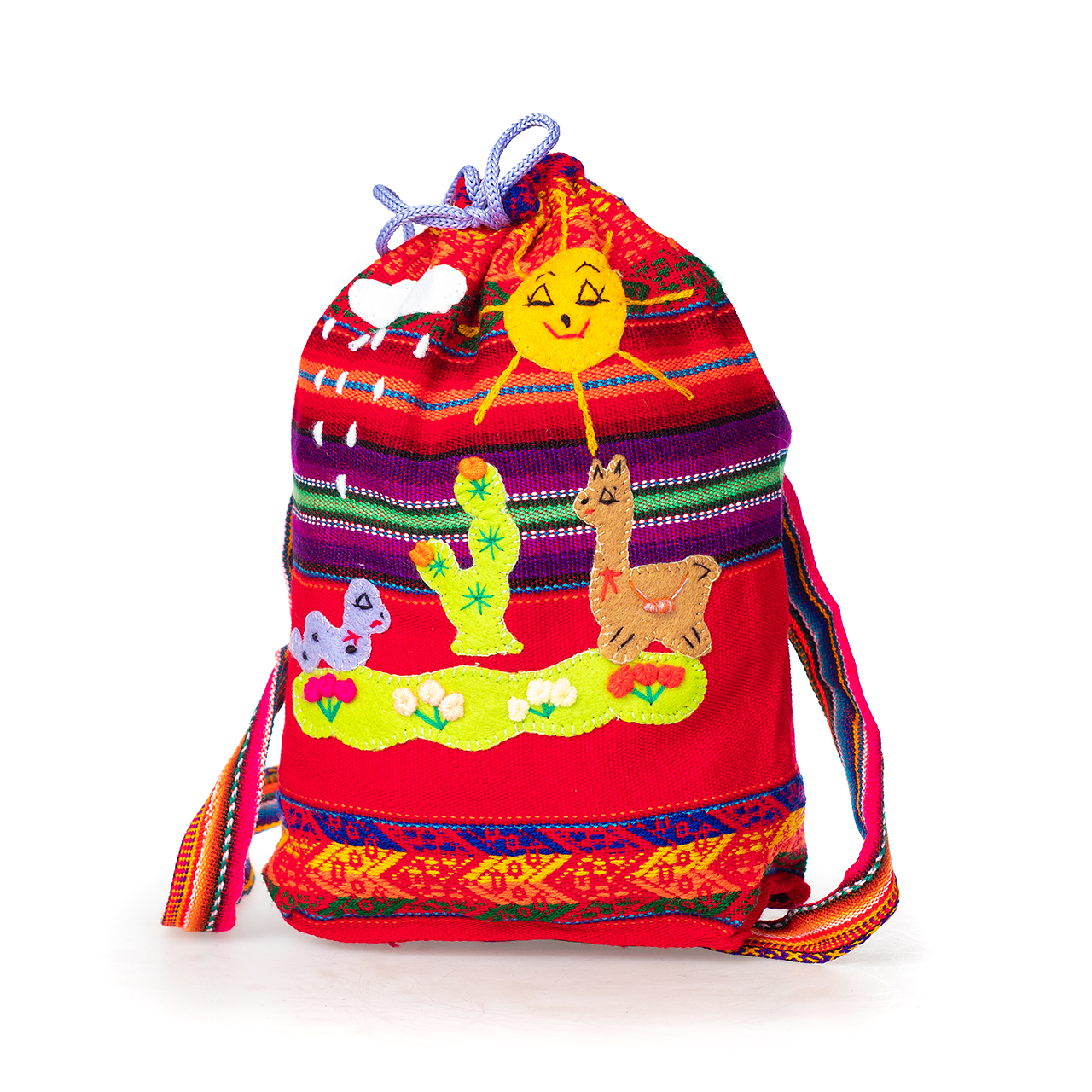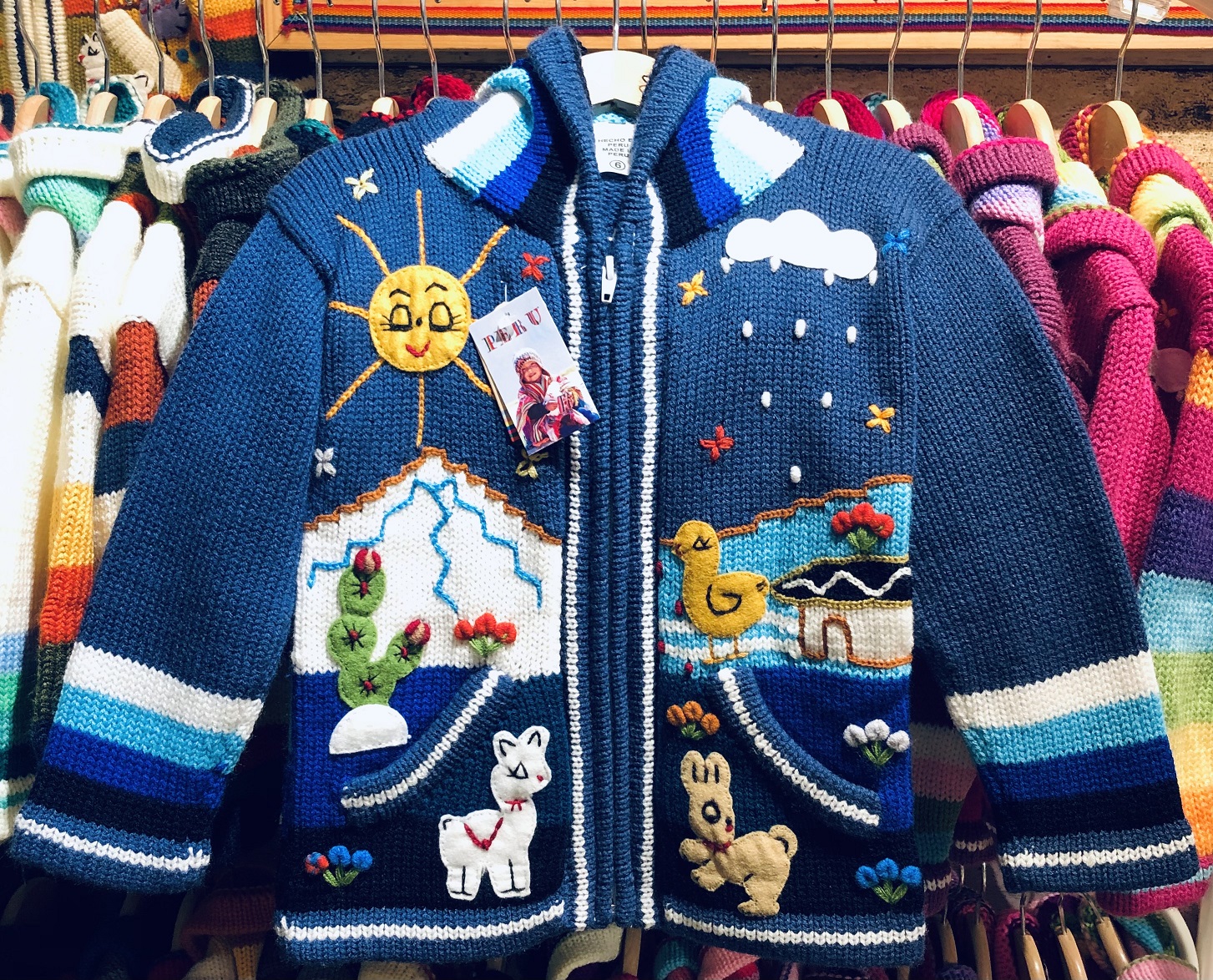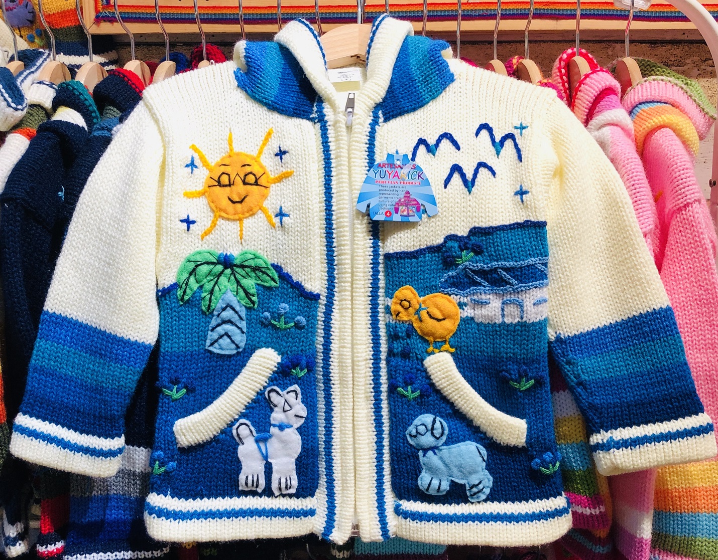 Peruvian children's winter hat with scenes from the Peruvian countryside both front and back. Every detail is hand embroidered and finished to create a 3-D effect. Suitable for children from 0 to 3 years.