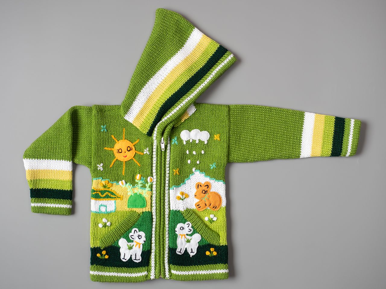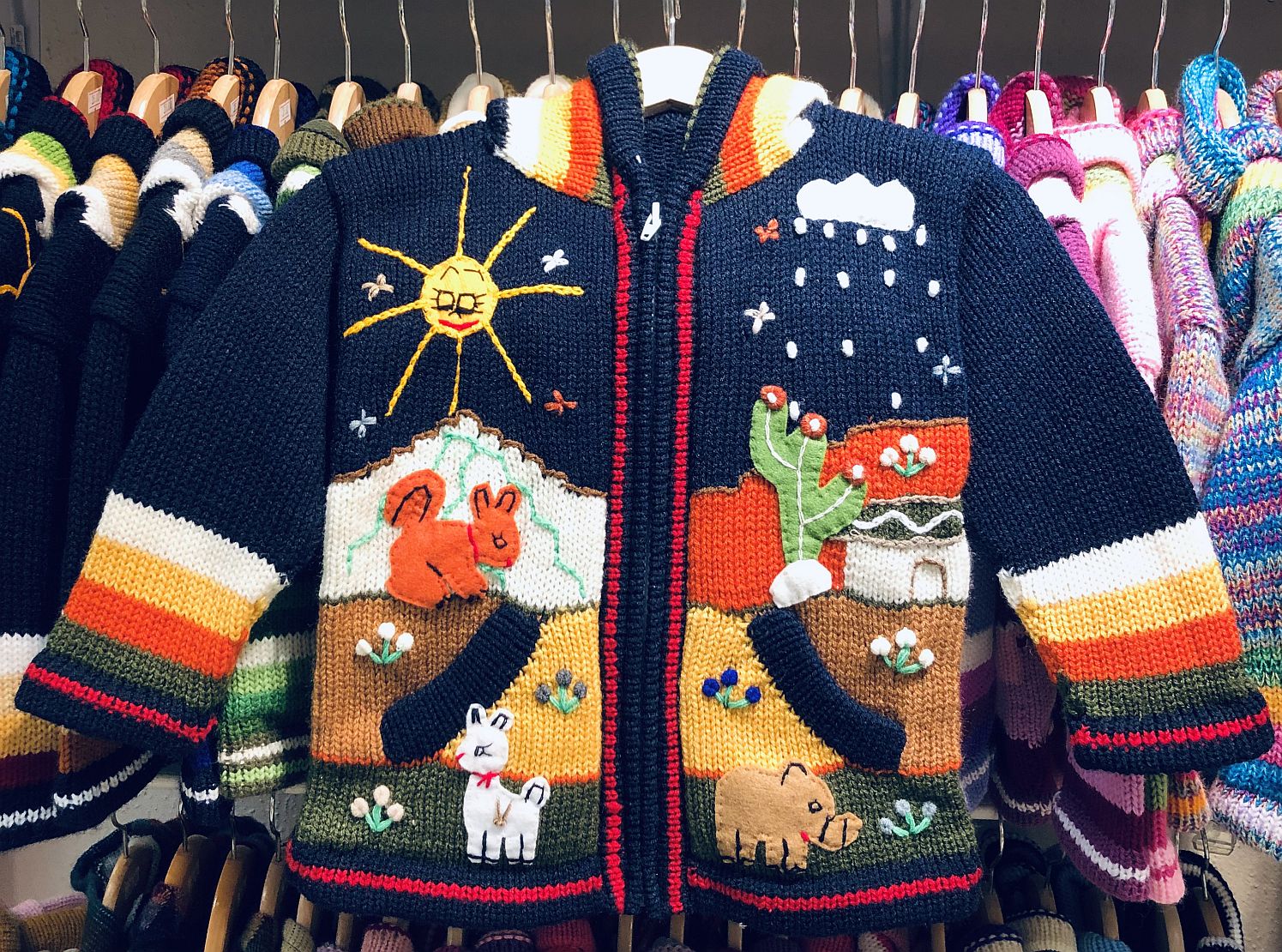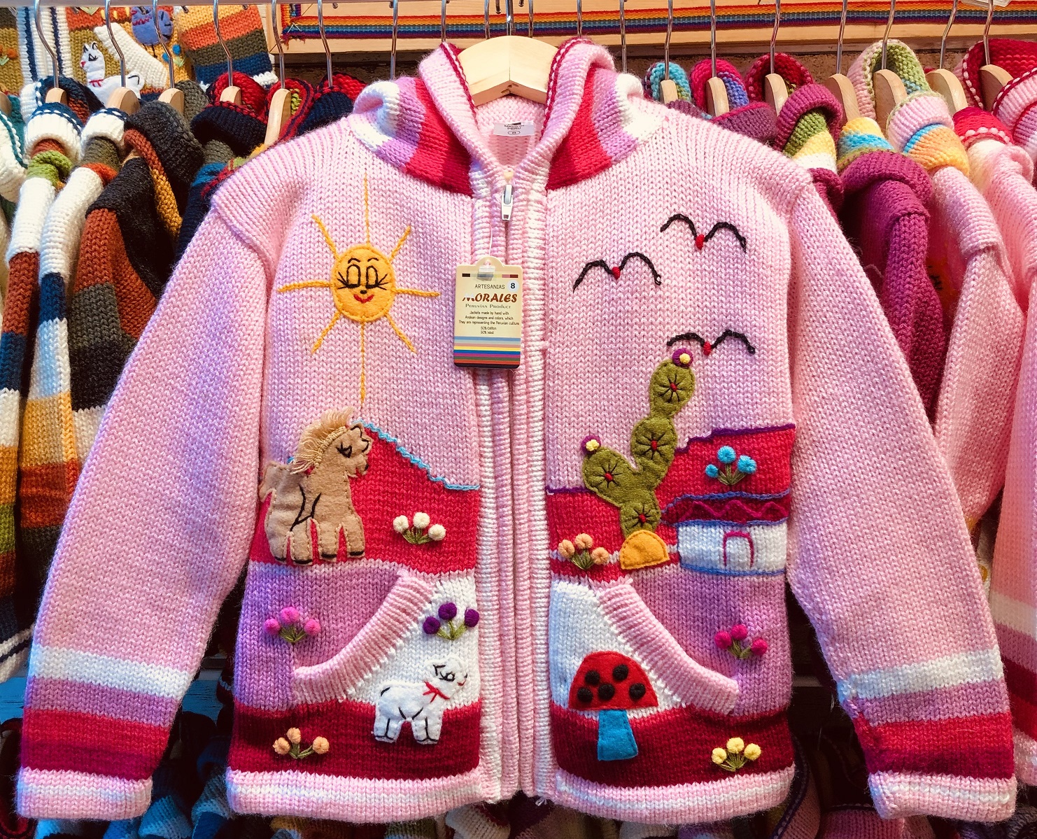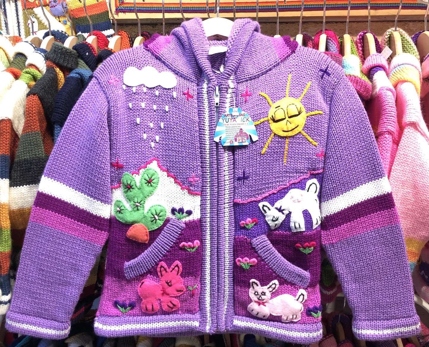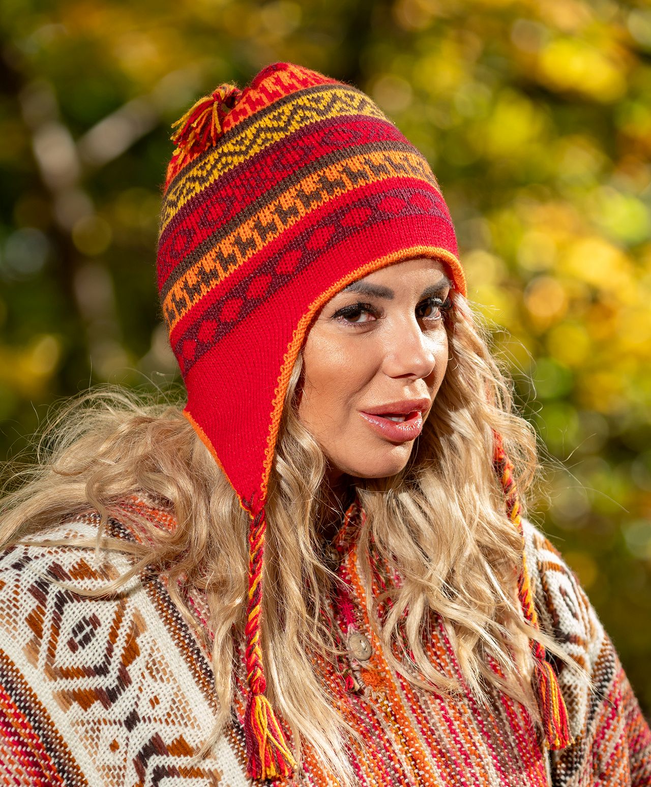 Peruvian children's winter hat with scenes from the Peruvian countryside both front and back. Every detail is hand embroidered and finished to create a 3-D effect. Suitable for children from 0 to 3 years.