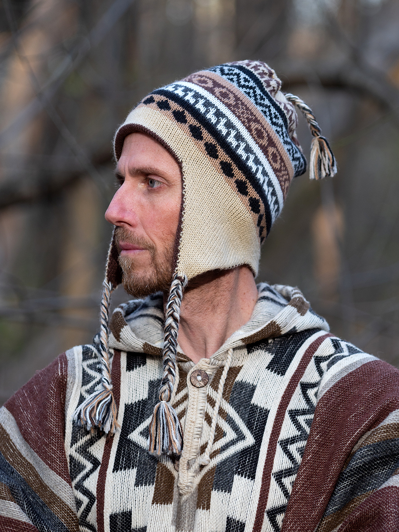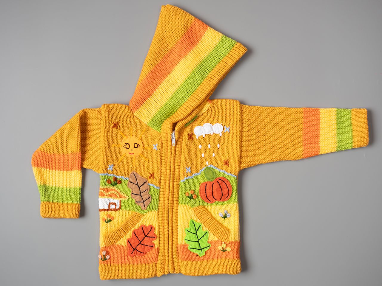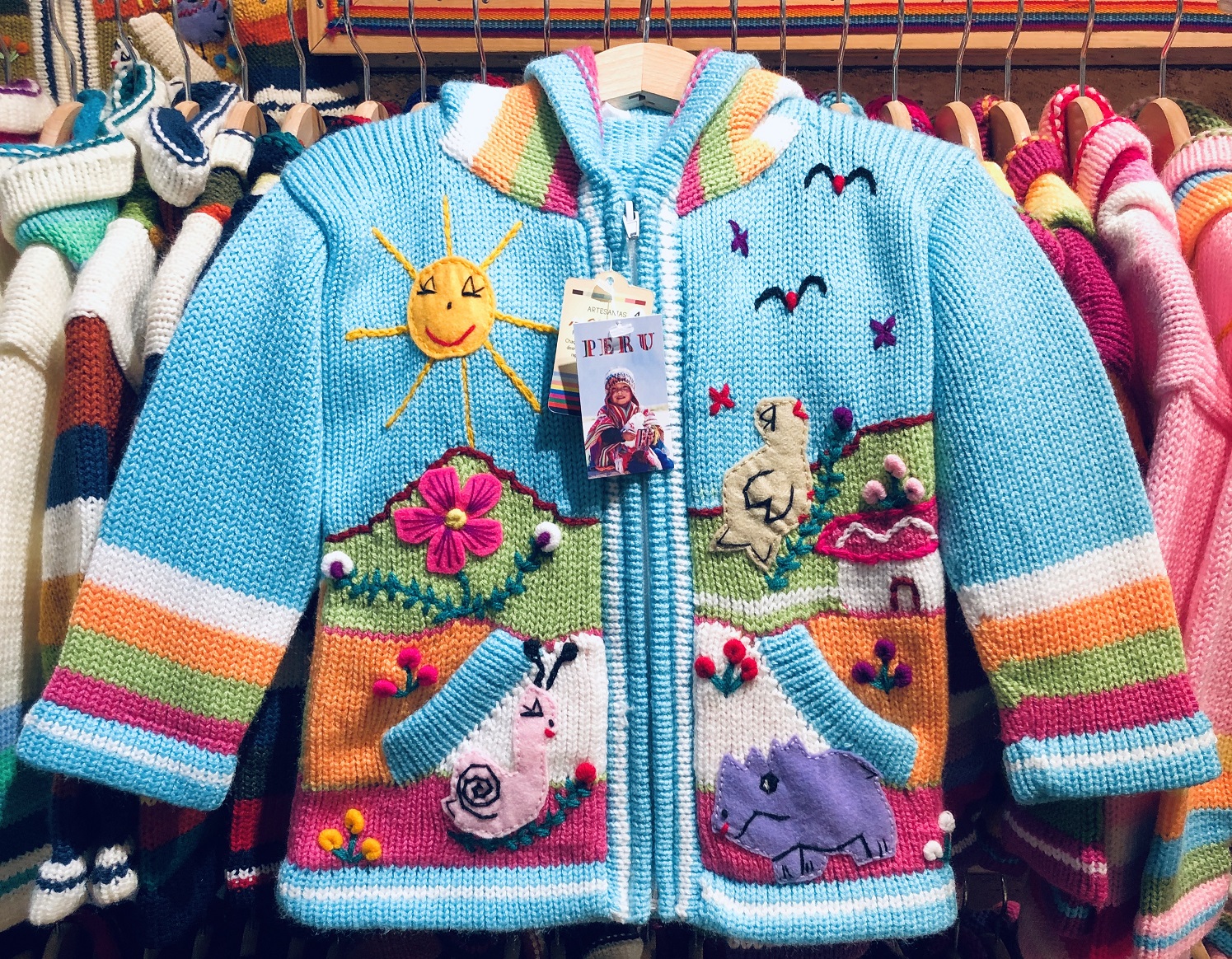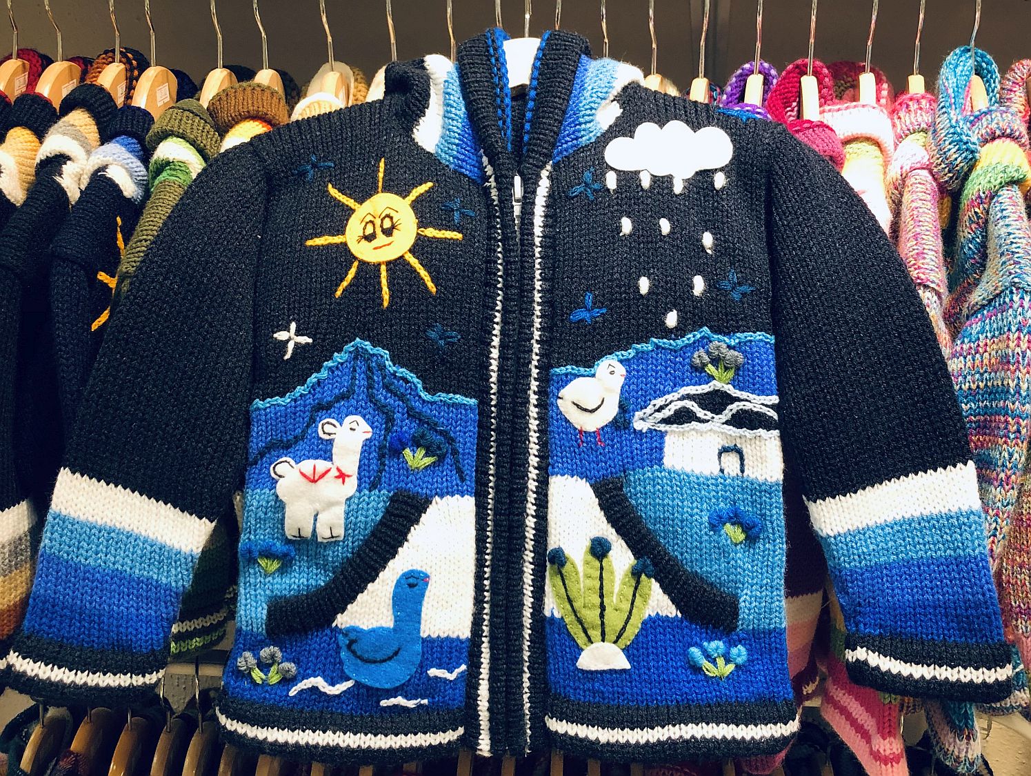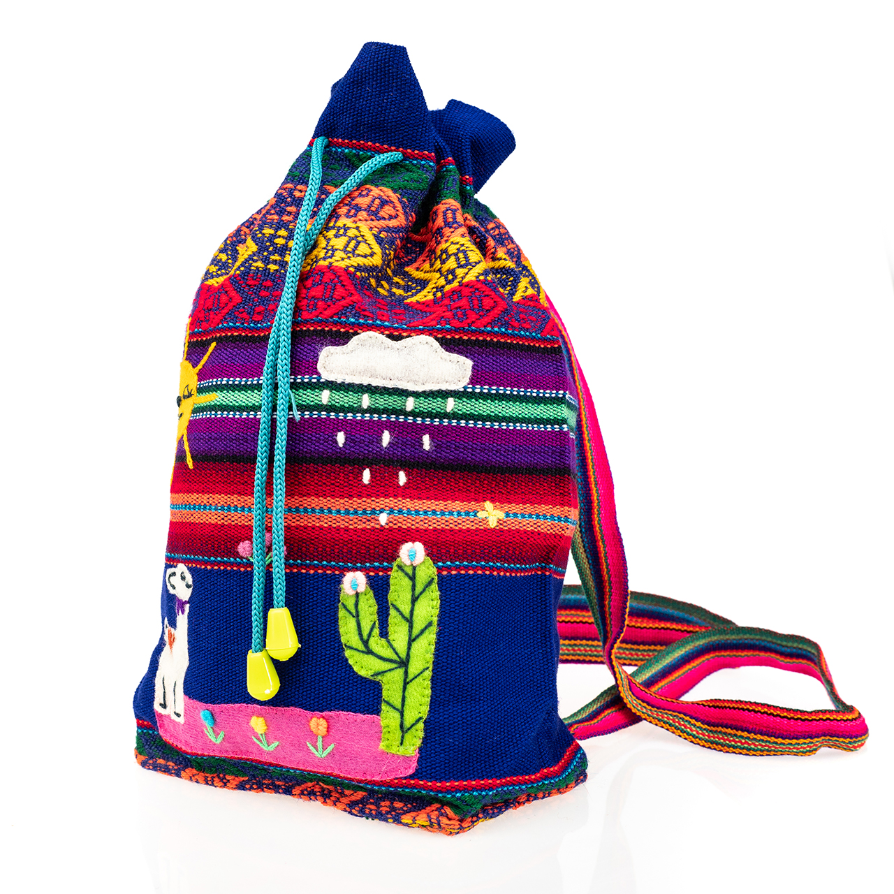 Peruvian children's winter hat with scenes from the Peruvian countryside both front and back. Every detail is hand embroidered and finished to create a 3-D effect. Suitable for children from 0 to 3 years.