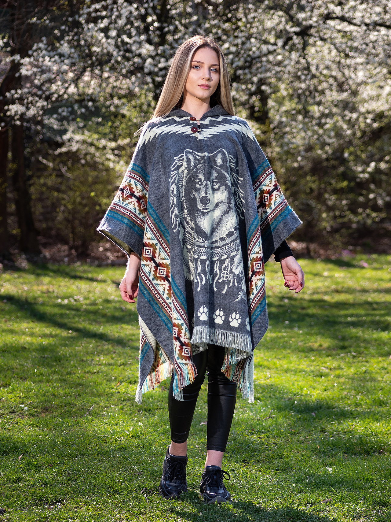 Poncho unisex gray wolf