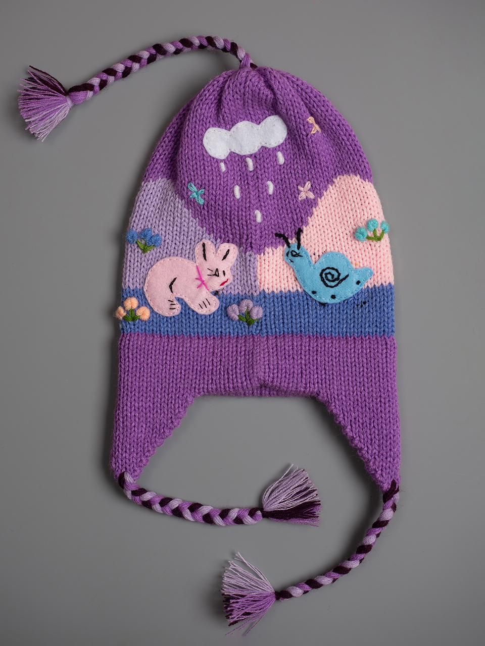 Детска шапка лилава 2 - 8 години 15 € Перуанска детска зимна шапка със сцени от андинската природа, както отпред, така и отзад. Всеки детайл е ръчно зашит и завършен, за да се създаде 3-D ефект. Подходяща за деца от 2 до 8 години. « producto anterior siguiente producto » Añadir a la cesta